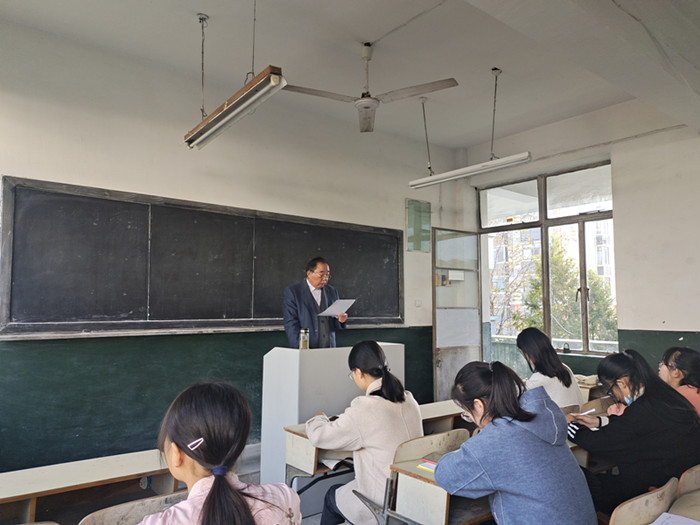 第二个环节是交流阶段,彭教授介绍了自己艰苦的求学经历和奋斗的职业历程。同学们对彭教授退休11载,仍坚持奋斗在教学、科研一线,不遗余力地参与学校发展建设的精神表示敬佩。同学们提出了“如何树立正确的人生观”、“上大学是否需要像高中一样大量刷题”等问题,彭教授结合案例一一解答。最后彭教授对青年学子提出了五条建议:1、控制手机和电脑的使用;2、上课坐前排注意听讲;3、在图书馆上自习;4、体育锻炼每天不少于半小时;5、广泛阅读。