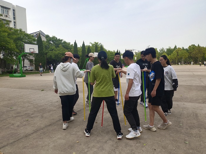 为积极响应心理健康月的活动通知,关注学生心理健康状态,提升心理健康水平,促进同学们德智体美劳的全面发展,beat365学生会于5月7日下午4:30在音乐厅旁篮球场上举办了户外素质拓展活动。beat365党总支副书记陈攀峰、团总支书记刘静,辅导员钟文峰老师、周樊老师、高雅老师以及学生会全体成员参加了此次活动。