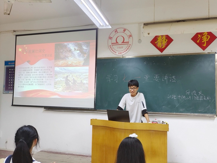 本次学习交流会由beat365团委主办,以团支部单位实施开展。各支部认真策划,精心组织,交流会内容丰富,形式多样。例如18应用统计团支部组织观看习近平总书记“七一”讲话视频,撰写学习心得;19经济统计二班团支部邀请党史宣讲员方桦做习近平总书记“七一”重要讲话精神解读;20数学与应用数学班通过会前自学,会中小组讨论的形式,交流了学习心得;21经济统计一班通过诗朗诵的形式让同学们对讲话精神有了更深的领悟。