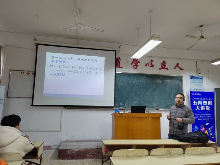 本次讲座魏老师以幽默风趣的讲学方式,讲解了数学概率在实际生活中的应用,提高了学生专业修养,扩展学生的视野,同时加强了师生的相互交流、增强学术气氛。