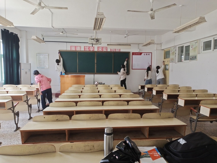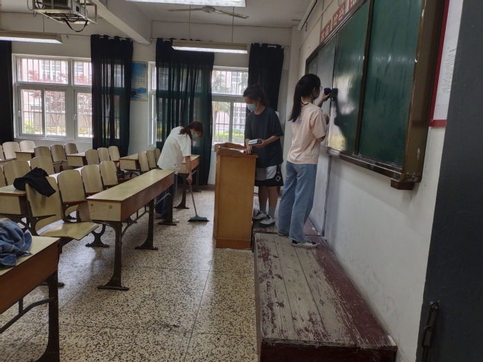 上午八点半集合前往教学楼后,志愿者成员按照活动前期任务分配,四人一组由各小组长带领前往任务区展开活动。志愿者成员们手拿垃圾袋,扫把等工具一丝不苟的清洁着每一间教室。从讲台到角落,志愿者们以认真的态度,高质量的完成着任务。教室虽多,但志愿者们依旧不说苦,不喊累,努力把我们上课的教室清理干净。充分发扬了勤劳能干的志愿精神。忙碌的身影是最美的,经过三小时的辛勤劳动,我们的教室变得干净整洁,志愿者们挂满汗水的脸颊也露出了微笑。