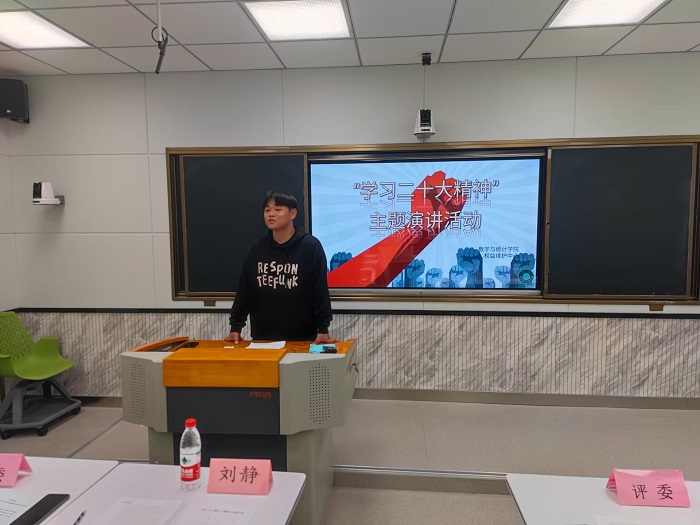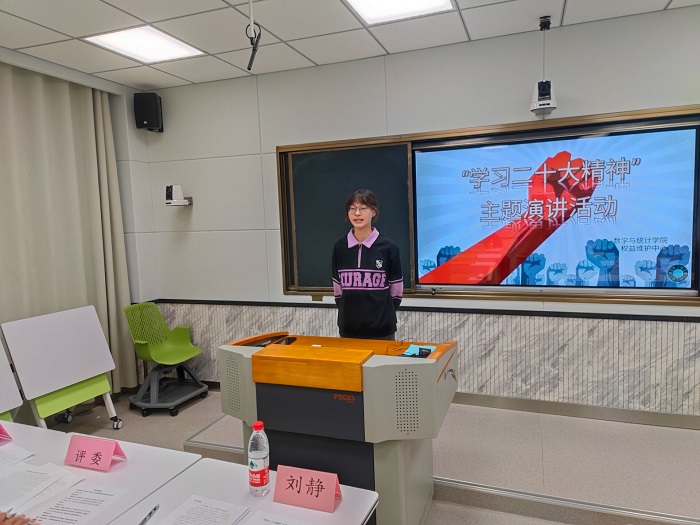 在主持人介绍完比赛规则和注意事项之后,比赛正式开始。本次活动共有六名参赛选手,分别是21经济统计学1班的徐梓靖、张璐璐、徐荣月和杨梦蝶,21金融工程的袁文正和22应用数学的韩冉。选手们以深情的语言、生动的故事表达出了对祖国对党对人民浓厚的爱和为实现伟大的中国梦而努力奋斗的决心。活动的最后评委对同学们的演讲进行打分排名,比赛结果为一等奖:韩冉,二等奖:袁友正、张璐璐,三等奖:徐梓婧、许荣月、杨梦蝶。
