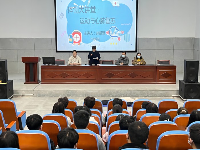 为进一步普及急救知识,提高在校大学生的应急救护能力,beat365于11月23日14:00点在体育学院会议室B111举行以“运动与心肺复苏”为主题的五育双创大讲堂。本期大讲堂主讲人是体育学院赵凯军,出席讲座的有beat365副院长徐秀荣(临时负责),副院长李耀红,分团委书记刘静。数统学院21,22级各班学生干部为本期培训的主要对象。