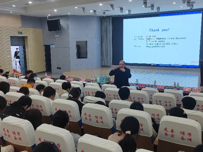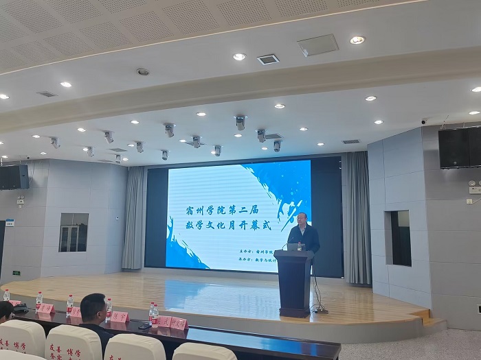 开幕式在beat365学子们悦耳的歌声中拉开了帷幕。首先,校团委书记凌峰为此届“数学文化月”发表致辞,详细介绍了第二届数学文化月的活动设计,指出“数学文化月”旨在弘扬数学文化、展示数学魅力、提升学生综合素质,助力推动构建五育并举的工作目标体系,并针对活动宣传、活动组织、活动成果的展示提出了三点希望。接着宁群教授以“感受数学文化魅力,提升自身数学素养”为主题,做了一场精彩的报告。先是以历史上著名数学家发现和创作的数学公式为切入点,再从数学是“文化”、是“智慧”、是“语言”、是“艺术”、是“猜想”五个方面介绍了数学文化的魅力。宁群教授一方面以慷慨激昂的语言表达着对数学家的崇敬,一方面用生动有趣的故事引导同学们去理解数学思维,深深吸引着在场的每一位师生。报告后,同学们与宁教授关于如何更好地继承与发扬数学文化进行了充分的交流。