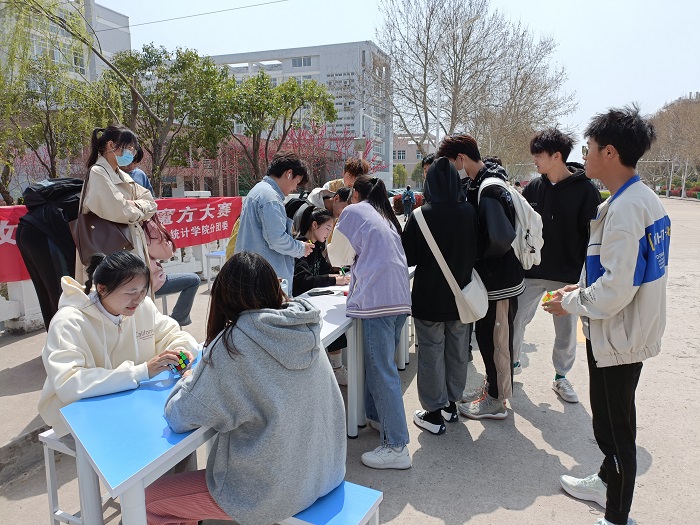为锻炼同学们的专注力、空间想象力、记忆力、协调力,从而间接的提高同学们的数学思维能力。beat365于3月14号中午12点在嘉言桥举行“玩转魔方”比赛,来自各学院60名同学积极参加本次比赛。