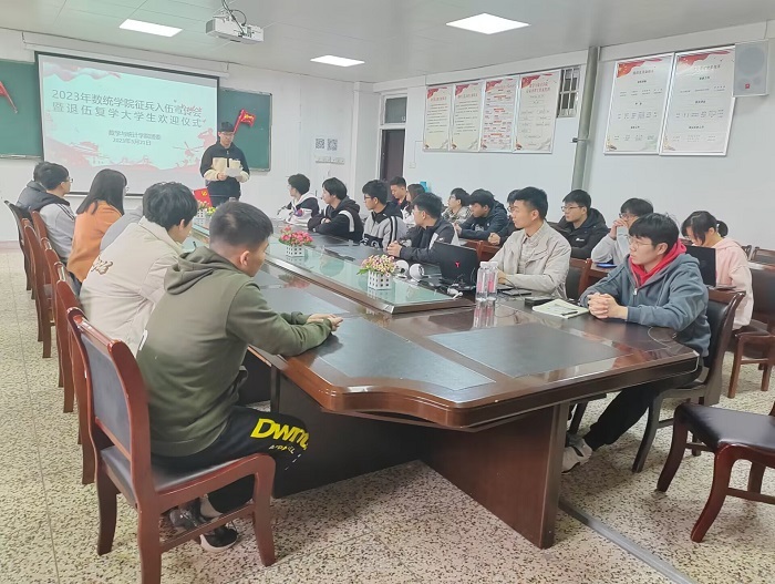 为深入宣传国家征兵政策,扎实推进大学生征兵工作,beat365团委于3月21日中午12:40在东教学楼二楼会议室举办了征兵入伍宣讲活动暨退伍复学大学生欢迎仪式。本次活动由22应数团支部承办,beat365党委副书记徐依俭、团委书记刘静、退伍复学大学生景博以及各班级有入伍意愿的同学参加了活动。
