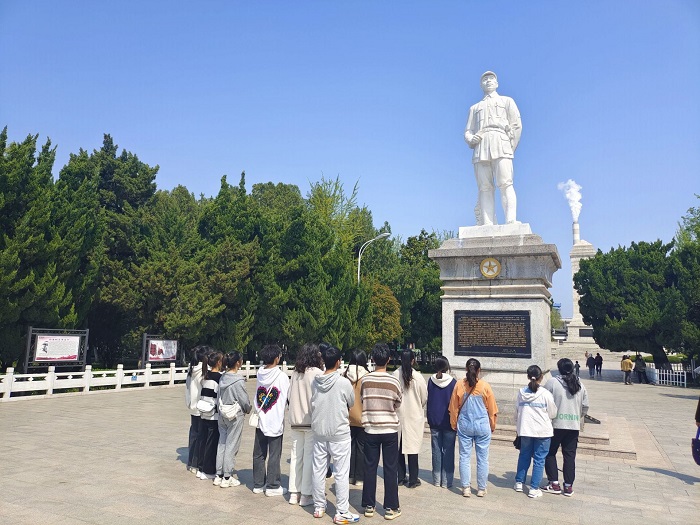 进入烈士陵园后大家都被陵园中庄严肃穆的气氛所感染而变得安静起来,生怕⼀个不小心打扰到安息的烈士。每⼀位烈士的墓碑上都有着这位烈士的生平简介,也讲述了烈士们参加的战役和牺牲的时间。看着⼀尊尊墓碑,同学们不禁想到那些革命前辈为了今日的和平时代所付出的艰辛,乃至于生命,在思想上所有学生干部都得到了⼀次心灵上的洗礼。