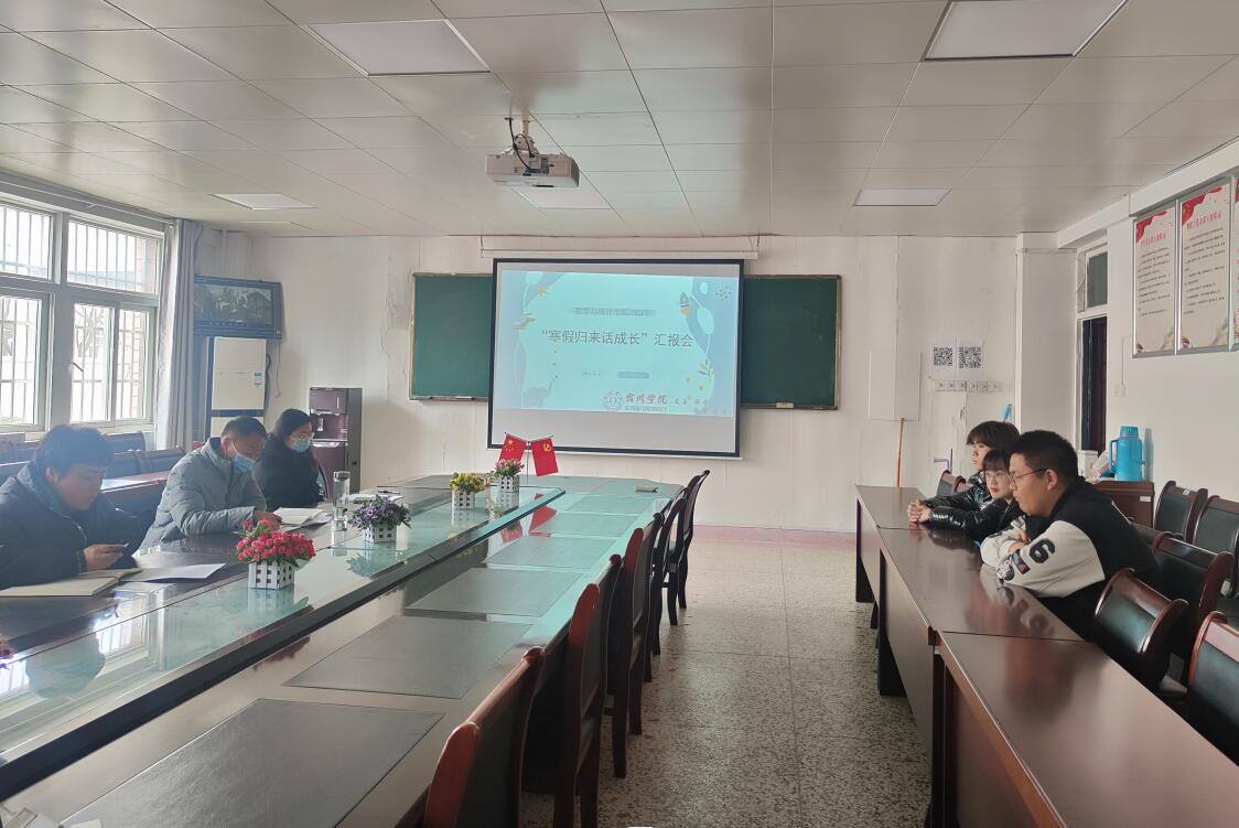 活动开始,首先由六位学生代表依次通过演讲和PPT,分享了他们在寒假期间的各种社会实践掠影:王瑞杰同学分享了自己职业生涯规划和努力进程;吴小雪同学勇于面对挑战,到银行兼职,体验职场生活;苏娜娜同学分享寒假读书心得和社会实践心得,展示自己的心理成长历程;李明宇同学参加了寒假企业兼职,在工作中体会到当代大学生的责任和担当;贾敏同学参与寒假志愿服务活动,以行动逐光影;杨梦蝶同学也从职业发展规划和寒假志愿服务两个环节分享了自己的心得体会。他们的精彩汇报展现了学子们的青春风貌与时代精神,在深化大学生服务社会的影响力同时,也增强了社会实践活动效力。