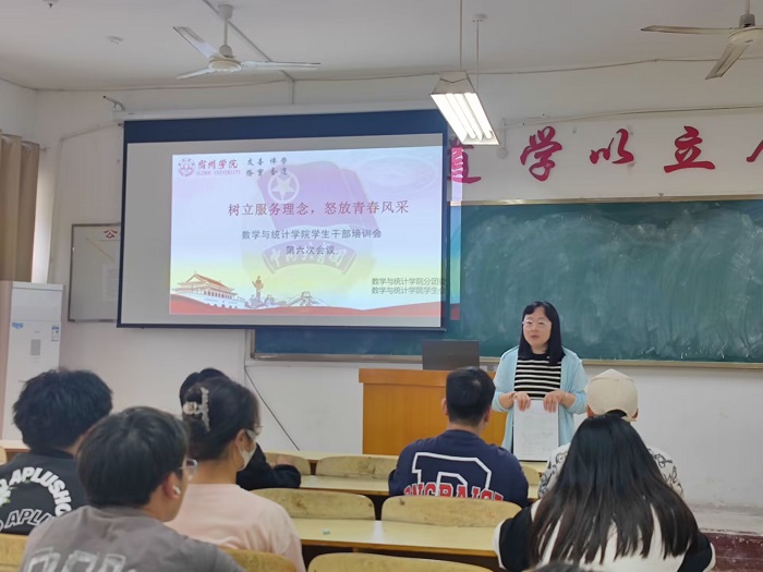 为深入推进学习贯彻习近平新时代中国特色社会主义思想主题教育,引领青年学生在社会课堂中受教育、长才干、做贡献,充分发挥实践育人作用,beat365于6月2日下午4:20在教学楼A103召开以“树立服务理念,怒放青春风采”为主题的学生干部培训会,本次会议由beat365执行主席石韦权主持,团委书记刘静作为培训主讲人。
