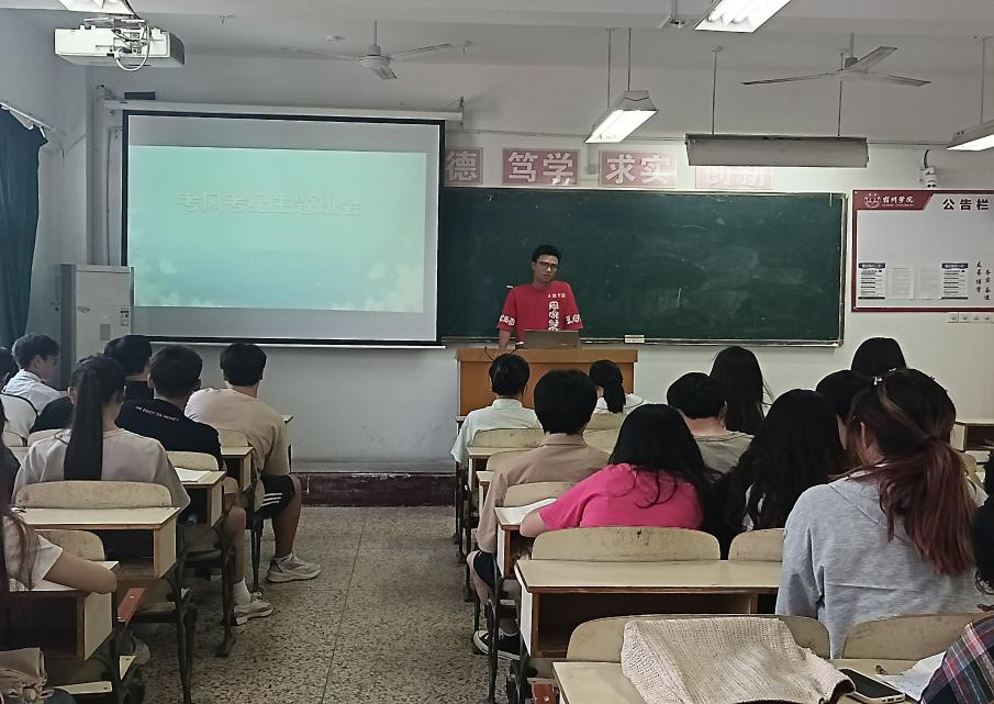 为扎实做好beat365学风建设工作,临近期末,beat365以班级为单位,在辅导员的组织带领下召开考风考纪主题班会,会议在教学楼各教室分别进行。