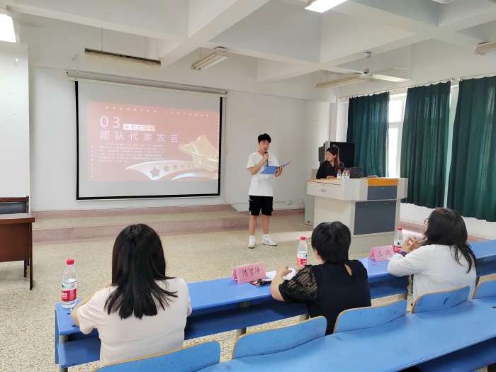 仪式共分为五项。第一项是学生会社会责任教育中心孙悦介绍了暑期“三下乡”社会实践的内容、目的、意义以及今年项目申报和立项情况。第二项,2022年全国优秀实践团队负责人陈奥分享了实践经验,从选题到策划,从实施到总结,精彩的发言为同学们指明了努力方向。第三项,陈攀峰书记做安全实践的指导发言。陈书记从人身安全、交通安全、信息安全等几个方面强调了实践安全的注意事项,并用生动的事例讲述了实践安全教育的重要性,告诫同学们在实践过程中,如发生意外伤害事件,应保持沉着冷静,对现场情况进行客观分析,在第一时间将具体情况告知和家长、老师和学校,以便学校及时、妥善处理。 此外,每一支队伍都要安排一个安全负责人,各队伍负责人或紧急联系人要及时与安全负责人沟通联系,汇报当天的安全情况和调研情况,保证大家的社会实践活动顺利安全地进行。第四项,团队负责人代表发言。校级重点团队负责人赵赞洋和院级重点团队负责人路师韩先后发言,详细介绍了他们接下来的工作安排,表达了认真实践的决心。最后,刘静和王琦两位老师解答了同学们关于三下乡的疑惑,并对不同团队进行了一对一的精准指导。