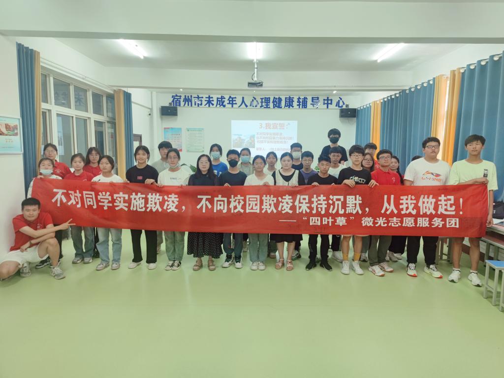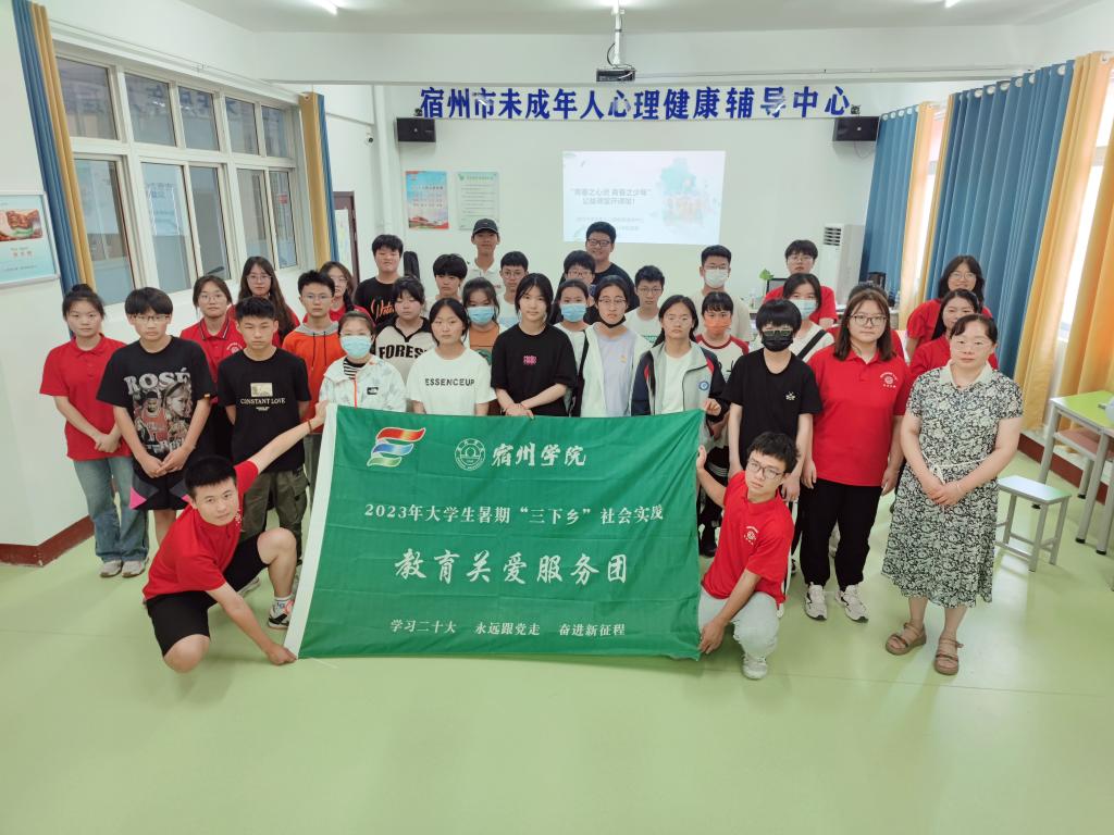 7月5日-8日,实践团队在指导老师刘静的带领下又来到宿州市未成年人心理健康辅导中心,为宿州市第一初级中学的34位留守儿童和进城务工人员随迁子女带来了团体心理辅导、心理素质拓展、朋辈心理宣讲、校园安全知识普及等形式丰富的公益课堂,并通过与中学生进行面对面交流,以及一对一互动了解中学生心理健康的问题,提供心理咨询与支持,促进青少年全面发展。