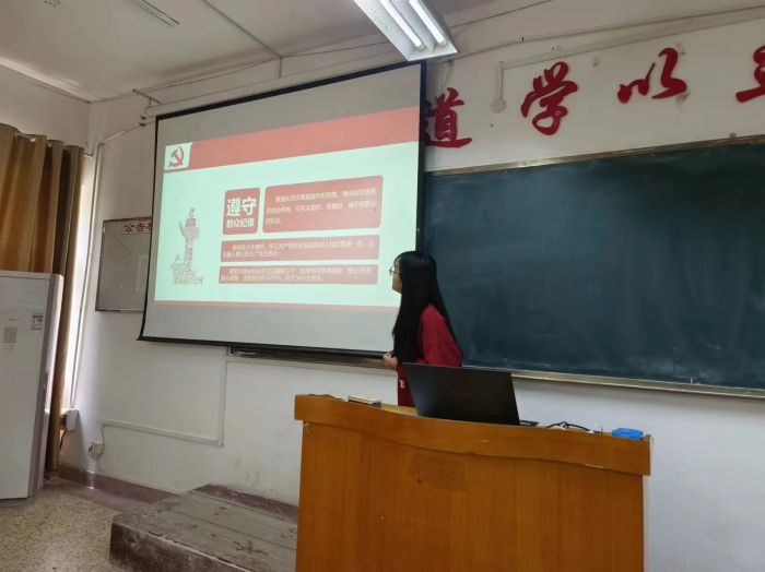 院级理论宣讲团成员任雅柔结合自身的学习和工作经历做了主题为“四讲四有好党员,兢兢业业做学干”的理论宣讲。任雅柔将马克思主义理论与学生干部工作相结合,以实际行动践行共产党员的标准和要求。