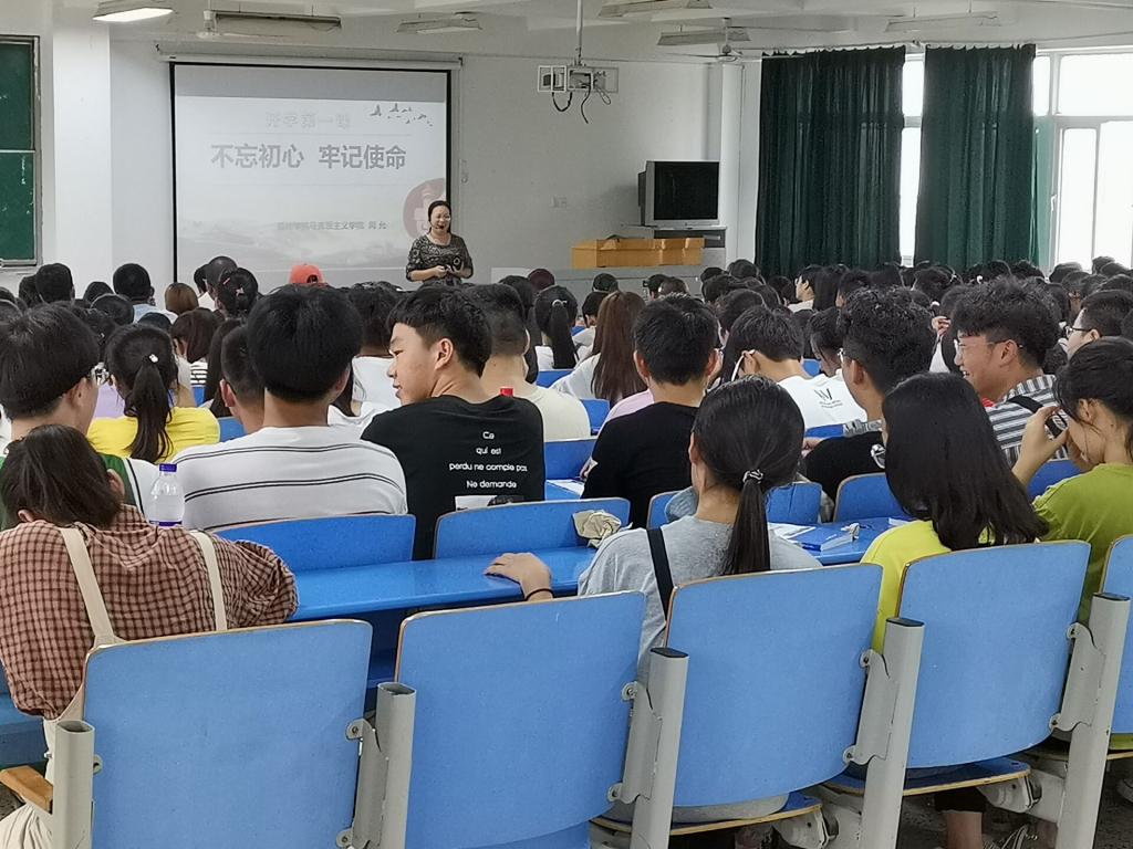 9月12日上午,beat365在教学楼B203教室举办了开学第一课讲座,讲座由马克思主义学院周允老师主讲。讲座主题《不忘初心,牢记使命》,beat3652019级新生辅导员以及243名新生参加了讲座。