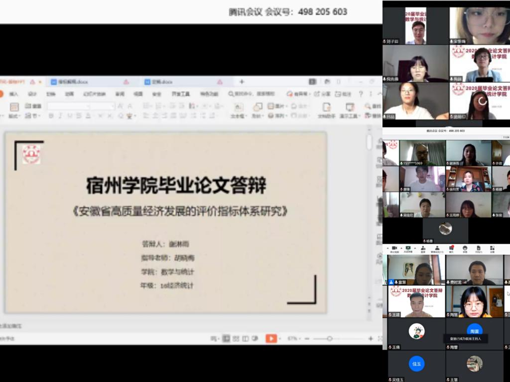 疫情防控期间,指导教师通过网络对学生毕业论文进行了精心辅导修改,严格按照毕业论文工作计划开展工作。按照教务处相关要求,答辩之前对论文进行了复制比检测,并于5月10日专门召开beat3652020届本科毕业论文线上答辩推进会,对答辩工作做了细致周密的布置和安排,同时对各答辩组老师进行培训。此次答辩前,各答辩小组成员按照要求布置会场,利用“腾讯会议”软件提前进行了答辩预演。答辩过程中秩序井然,有条不紊,达到了较好的效果。