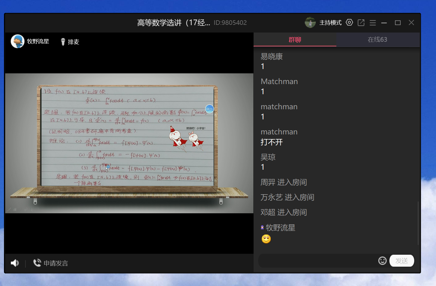 线上教学平台及途径丰富灵活,霍承刚老师通过QQ群课堂展示教学过程,课前选取典型例题制作PPT采用录屏软件生成课件;教学过程中,把“教”与“学”有机结合,带领学生边学习录屏课件边讲解知识要点,强调主要内容、主要方法,计算处理技巧等;并适时与学生沟通交流并强调重点,解释难点,提醒学生思考及集中注意力,达到提高课堂教学效果的目的。