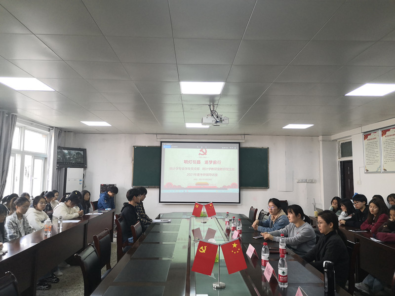 为进一步促进党史学习教育与实际工作相结合,着力提升“我为师生办实事”的工作成效,激发学生的考研热情,使学生明确考研方向,有针对性的做好考研备考工作。统计学专业学生党支部与统计与金融教师党支部于2021年10月28日在学院会议室联合举办了“明灯引路、逐梦前行”2021年度考研辅导讲座。统计学专业学生党支部书记高雅主持会议。