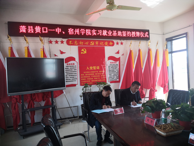 为了进一步拓宽学生就业渠道,探索就业新思路,3月9日上午,数学与统计学院副书记徐依俭、实习实训中心副主任高显彩、学生事务管理科副科长钟文峰和辅导员高雅在充分调研的基础上,与萧县黄口一中签订就业基地协议,并举行签约授牌仪式。