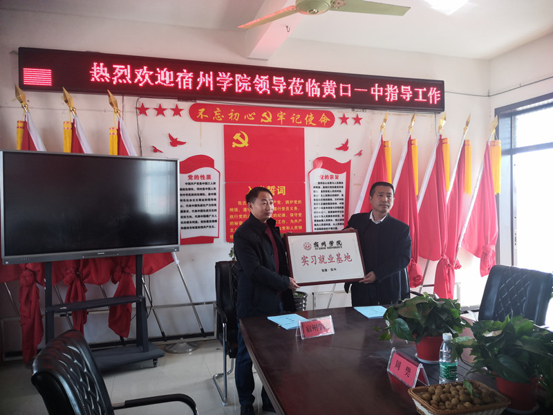徐依俭一行对萧县黄口一中的校容校貌建设和学校在教育教学等方面的情况进行实地考察。两校负责人就各自院校的办学情况进行了交流,双方就大学生就业基地事宜达成共同意见,签订了就业基地协议并举行了授牌仪式。