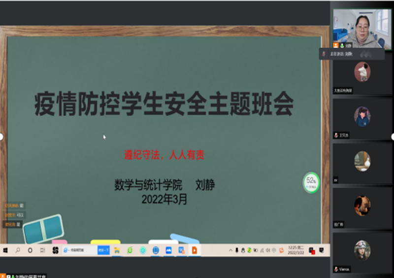 近期,国内多地出现新冠肺炎本土确诊病例和无症状感染者,疫情防控形势严峻复杂。为贯彻落实学校疫情防控工作会议精神,从严从实做好学院疫情防控工作,筑牢广大学生疫情防控思想防线,3月22日,beat365组织召开疫情防控安全教育主题班会。主题班会通过线上线下相结合方式由各班辅导员主持召开。