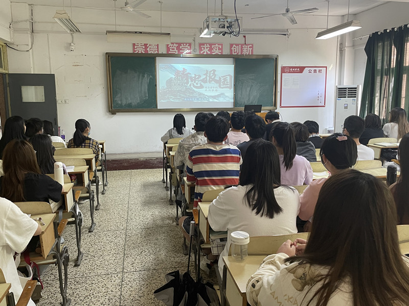 为迎接党的二十大胜利召开,庆祝中国共产主义青年团成立100周年,弘扬五四精神,引领广大青年勇敢肩负起时代赋予的重任。beat365于2022年5月4日下午在教学楼A109组织学生观看时政微视频《精忠报国》,2021级金融工程班级全体同学观看微视频。