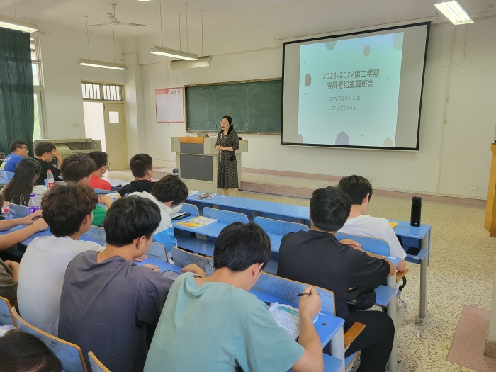为深入贯彻落实《教育部关于做好2022 年普通高校招生工作的通知》及《安徽省教育厅关于开展 2022 年教育考试诚信教育的通知》文件精神,维护健康有序的考试环境,确保六月份高考、大学英语考试、对口招生考试的公正性和严肃性,数学与统计学院开展高考期间学生教育主题活动,活动以各班级班会形式分散召开。